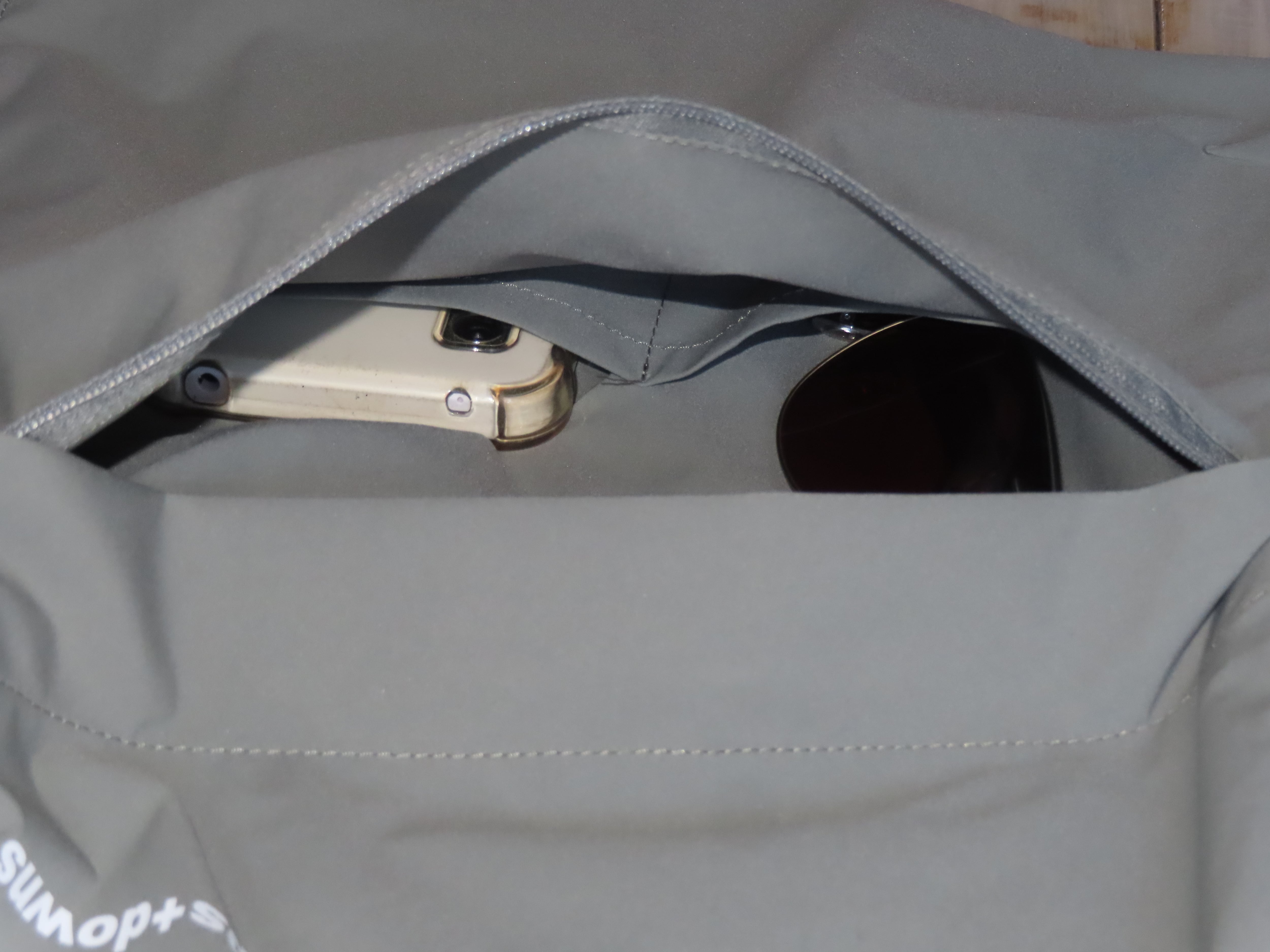 登山中、手元に欲しいスマホやサングラス、ちょっとした行動食など多くのアイテムを収納できます。